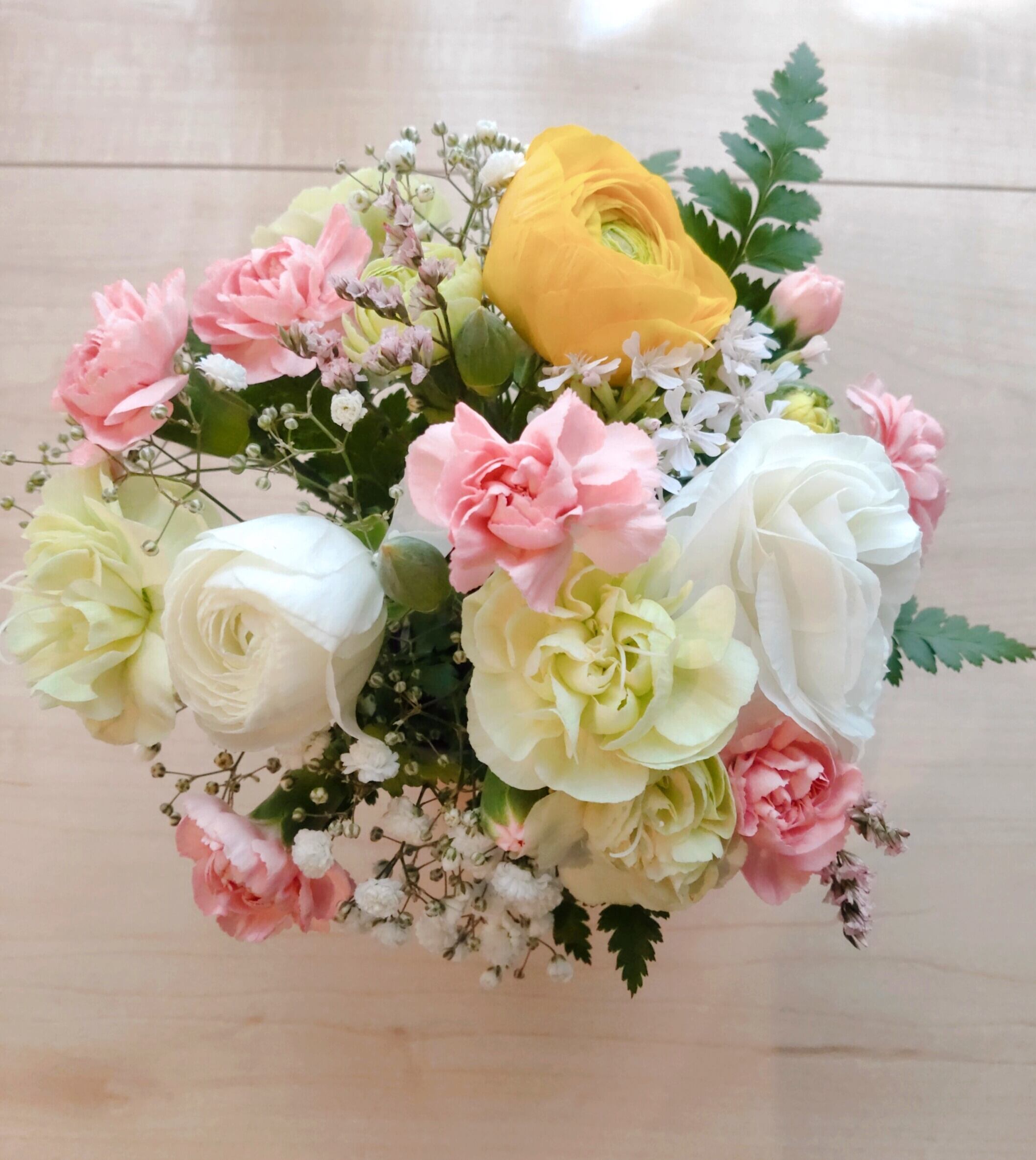 鉢は手乗りサイズでコンパクトなものを使用。玄関やお部屋等に配置しやすく、ちょっとしたプレゼントにもおすすめです。